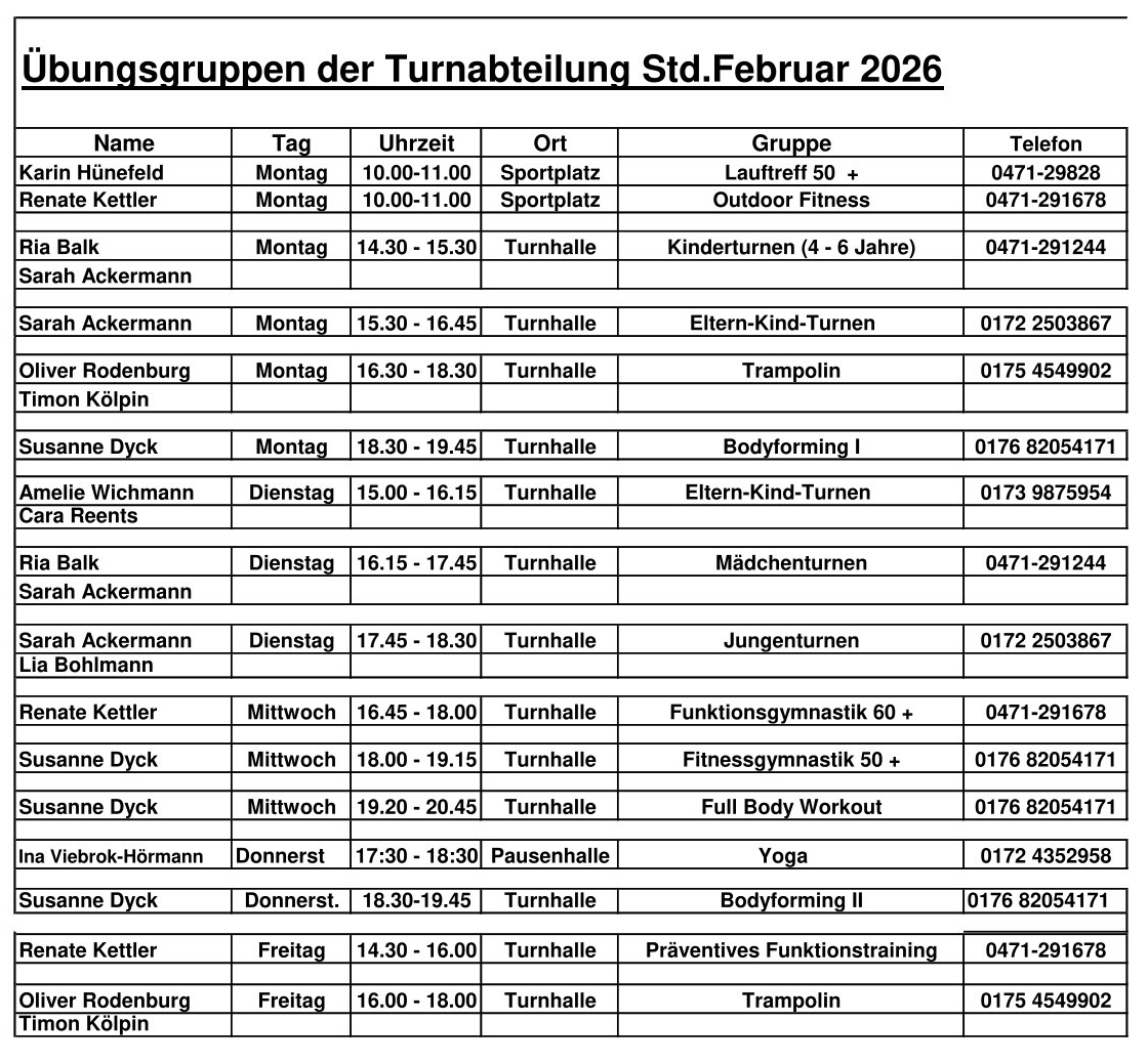 Unsere Turnabteilung bietet vielfältige Bewegungsangebote für Kinder ab dem 2. Lebensjahr und für Erwachsene bis ins hohe Alter. Mit Freude an der Bewegung, in geselliger Atmosphäre, etwas für Fitness und Gesundheit zu tun, ist die Zielrichtung unserer Sportangebote.